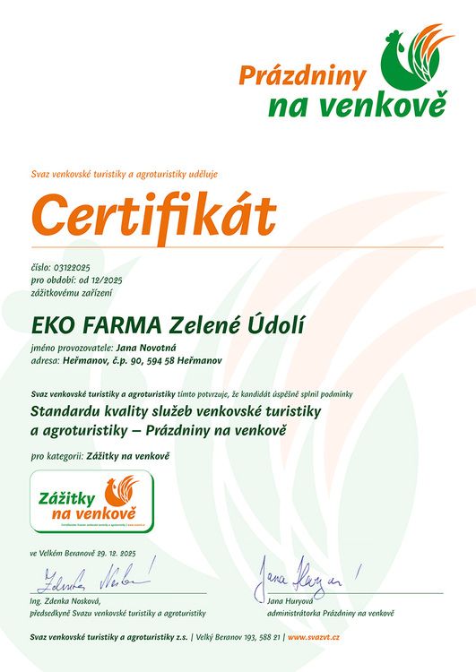 No a pokud by jste se chtěli svézt na koni, koupit si pravý lesní med, domácí sýr, mléko, máslo a další zemědělské produkty, pak vás velice rádi odkážeme na naše partnery z Regionálního sdružení zemědělců "Přátelé Zeleného údolí".